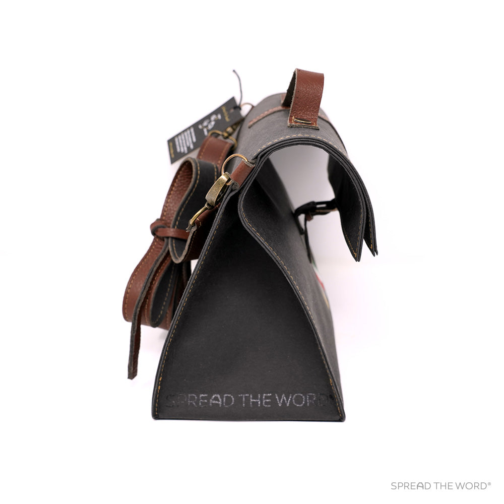 Bolsa crossbody hecha de papel reciclado: celulosa biodegradable y asa de piel